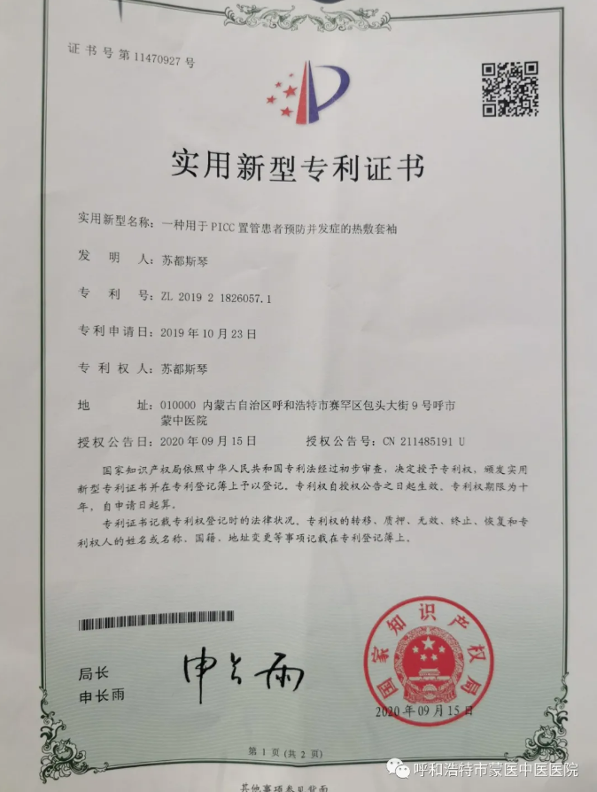 呼和浩特市“十三五”科技创新成果展于9月25日在呼和浩特科创中心开展,本次展览是第八届内蒙古“草原英才”高层次人才合作交流会暨呼包鄂乌人才创新创业周呼和浩特市主会场的一项重要活动。展览从科技创新引领工业发展新动能、科技助推现代农牧业发展、科技创新惠民生、科技创新载体建设、产学研合作、科技英才、科技特派员工作等方面充分展示了“十三五”以来呼和浩特市科技创新工作取得的显著成就。成果展以图片、模型、实物和多媒体为呈现手段,展示出了呼市“十三五”期间涌现出的科技人才和在新材料、新能源、生物医药、现代农牧业、医疗卫生健康等多个领域的150余项科技成果。其中骰宝玩法中心 蒙医心病科苏都斯琴的实用新型发明专利(一种用于PICC 置管患者预防并发症的热敷套袖)入选参展。该专利的展出为骰宝游戏 科技创新工作挣得了荣誉。
