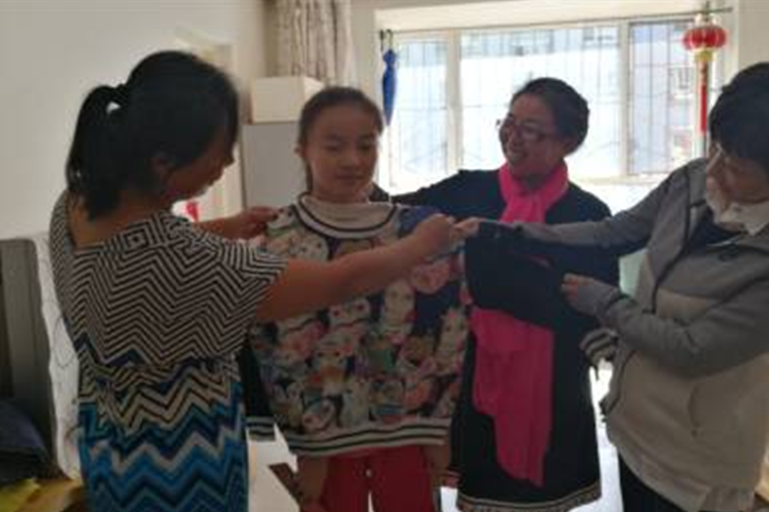 活动结束后,农工党回民区总支主委哈森高娃,党员太平、白音扎布一行还看望了脑瘫女孩田欣冉,送去了衣物、食品和慰问金。