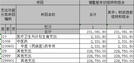 2.“调整前年初结转和结余”为上年度部门决算年末结转和结余数,“调整后年初结转和结余”为本年度调整后年初结转和结余数。