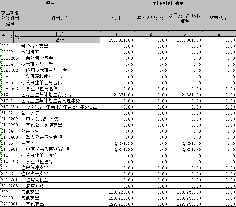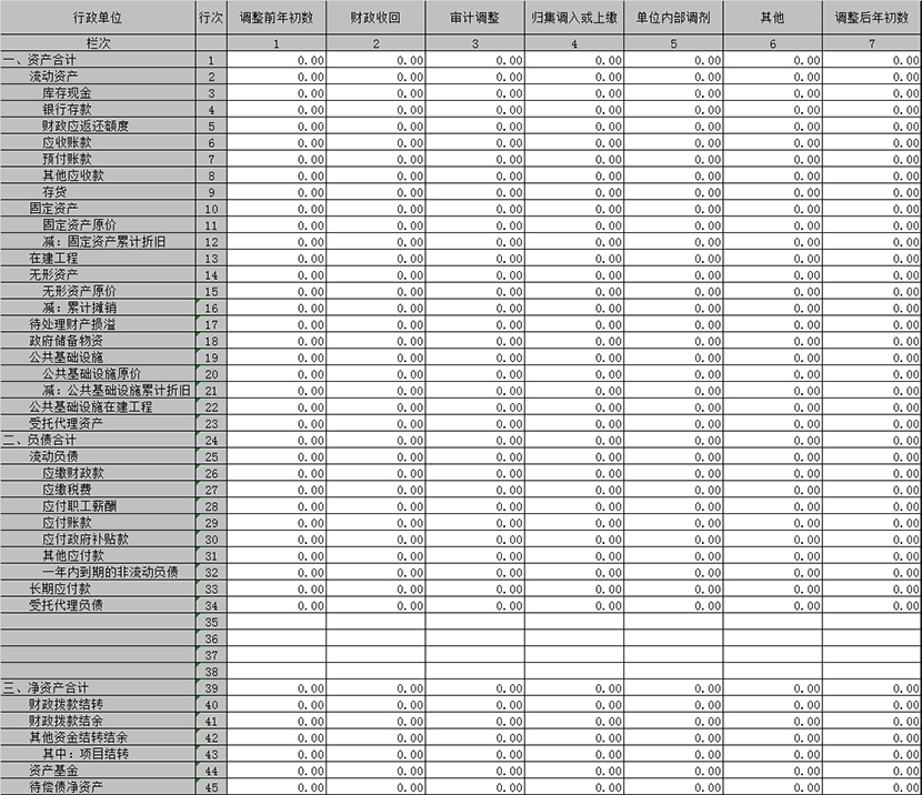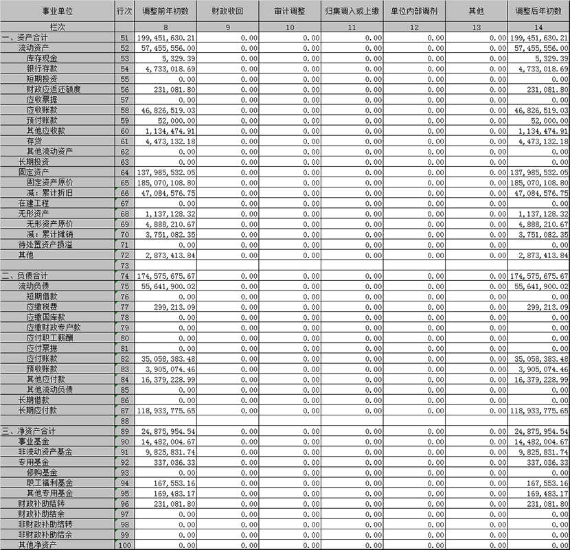 注:1. 本表反映部门和单位年初结转和结余调整情况,由年初结转和结余发生变动的部门和单位填报。