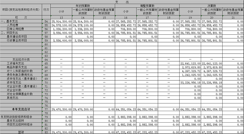 3.“机关运行经费”填列行政单位和参照公务员法管理的事业单位使用一般公共预算财政拨款安排的基本支出中的日常公用经费支出,相关数据应与财决07表保持一致。
