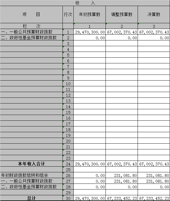 注:1.本表反映预算单位一般公共预算财政拨款年初结转和结余调整及增减情况。