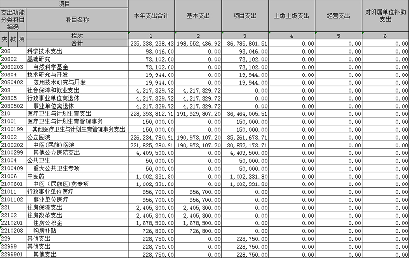 Z08 一般公共预算财政拨款支出决算明细表(财决08表)