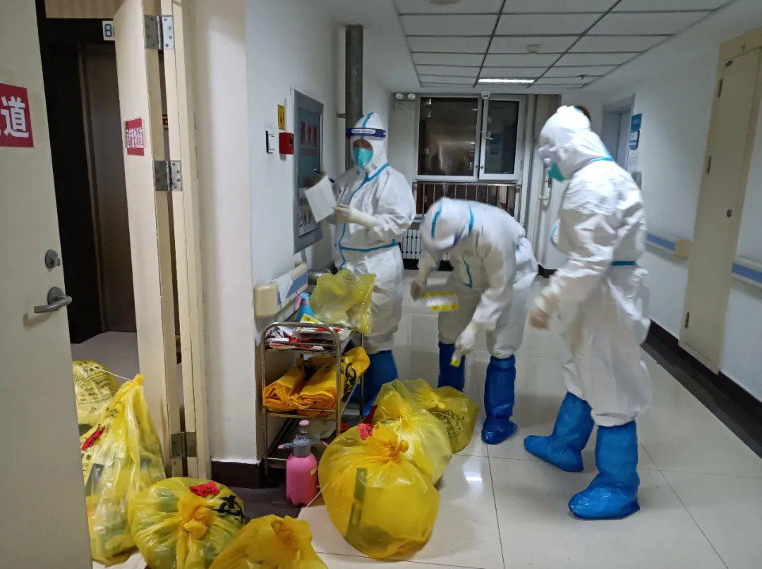 也在连夜改造,改造完成后,我们进入查看了现场,条件比较艰苦,风险还是存在,国家派出的专家组也在现场,这不仅使我们得到了更加专业的培训,也给我们吃下了一颗定心丸,让我们更加有信心战胜这场疫情。在这样的条件下,大家默默坚守在自己的岗位上,不断的练习,做好迎接战役的准备。 早上7:30 继续分组进行穿脱防护服训练